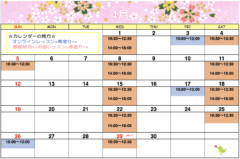 【2026年3月・4月】書道教室銀座校のカレンダー